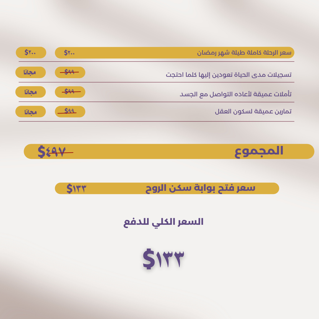 - الرحلة كاملة مسجلة مدى الحياة على قناة التلكرام حتى لو لم تحضريه خلال شهر رمضان